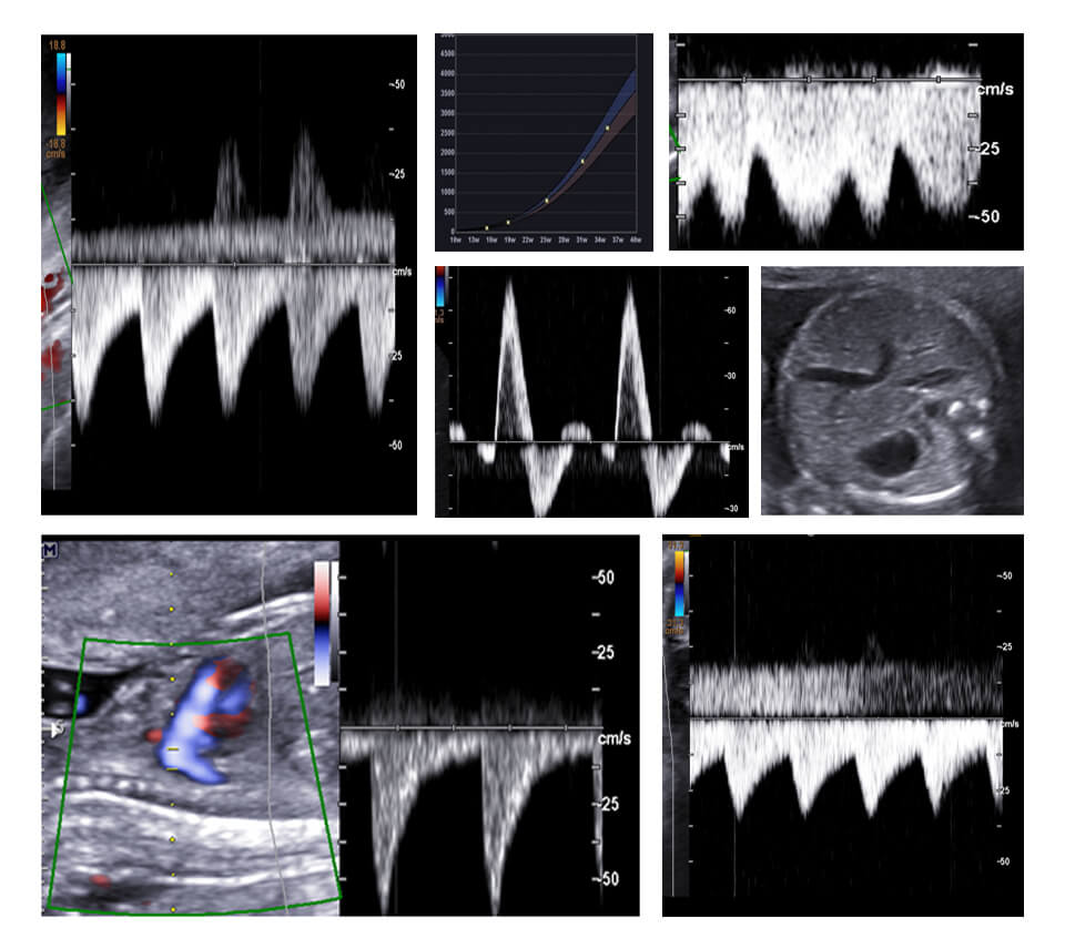 FETAL BIOMETRY/ FGR CONCEPTS/ IMPORTANCE OF GRAPHS AND SERIAL EVALUATION, COLOR DOPPLER : UTERINE/ UMBILICAL/ MCA/ DUCTUS/ CPR, TO SCREEN/ TO MANAGE/ TO PROCEED OR TERMINATE